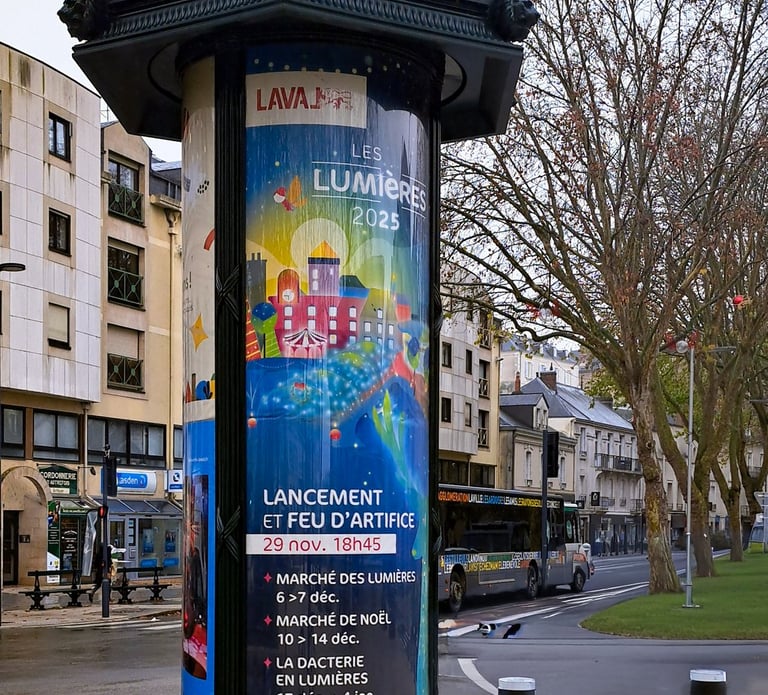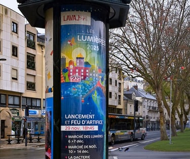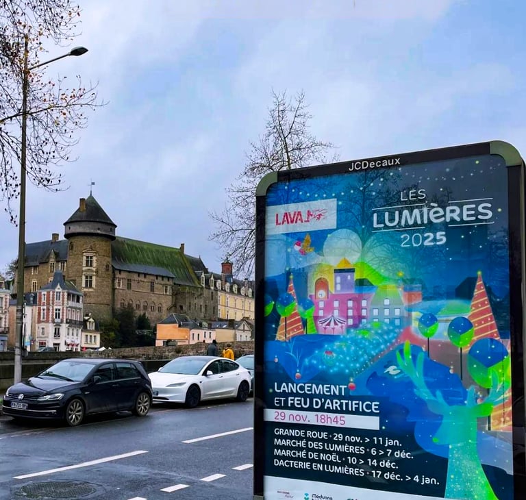 Diffusée pendant un mois dans toute la ville, cette affiche devait capter le regard, transmettre la magie de l’événement et inviter chacun à venir découvrir les illuminations.