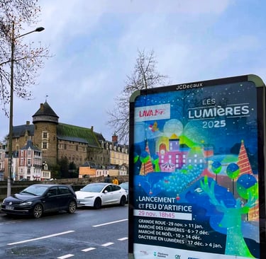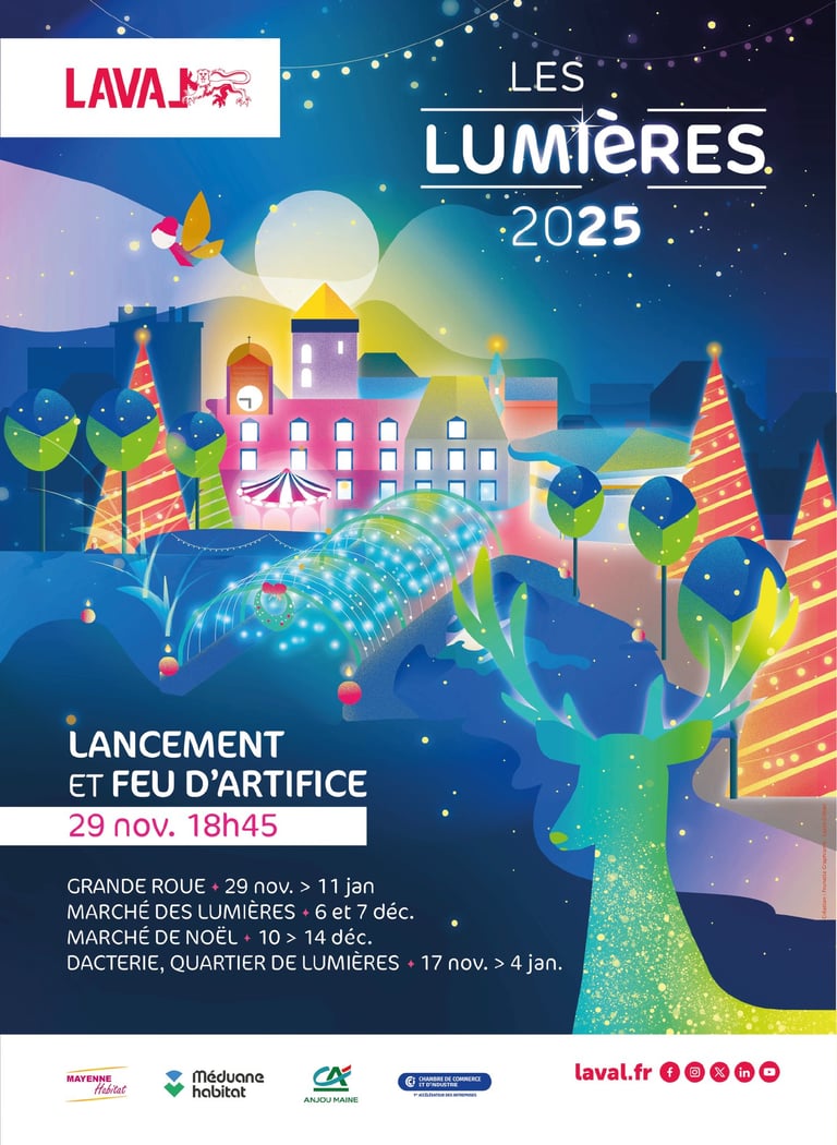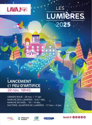 Pour l’édition 2025 des Lumières de Noël à Laval, j’ai eu le plaisir de concevoir une affiche haute en couleur autour du thème “Noël fantastique”.